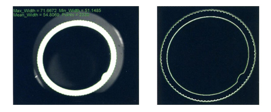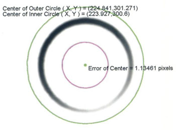 外円径1.26mm内円径100μmの金属棒端面の画像を取り込み、外円径・真円度・同心度を